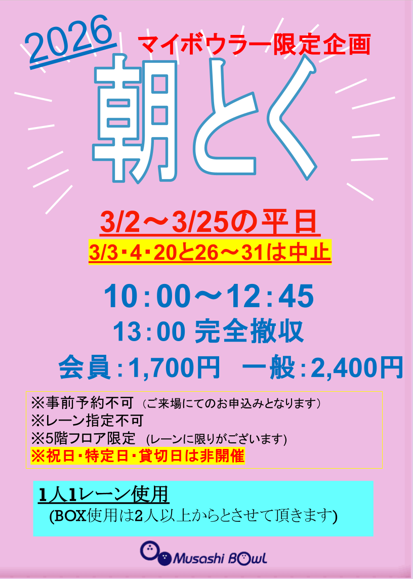 実施期間:2026年3月2日〜25日の平日10:00~12:45までご利用可能! ※例外あり、詳しくは下記をご参照ください。